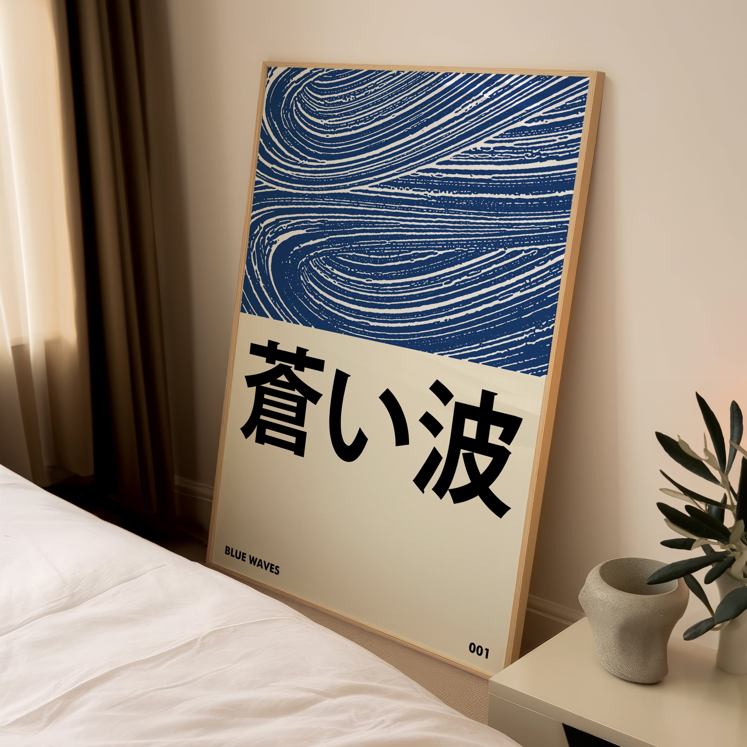 The composition balances movement and stillness — inspired by Japanese aesthetics, coastal serenity, and modern poster design. Designed to feel quiet yet powerful, this artwork brings depth without noise, making it ideal for refined interiors that value calm, balance, and intention.