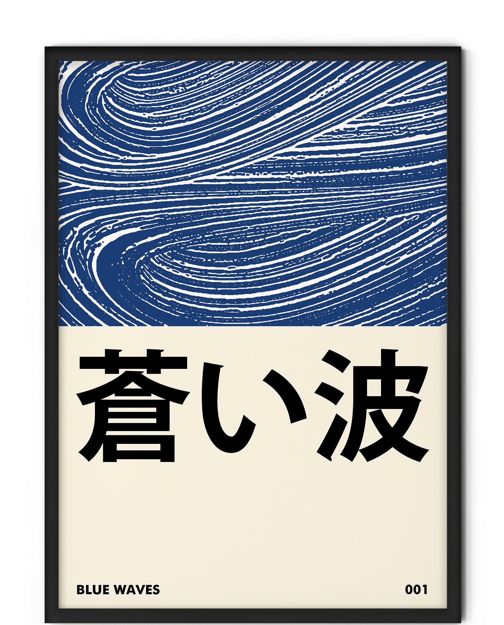 A calm study of motion and rhythm, Blue Waves (蒼い波) translates the timeless energy of water into a modern graphic form. Flowing indigo lines echo traditional Japanese wave patterns, reimagined with a contemporary minimalist approach and bold typography.