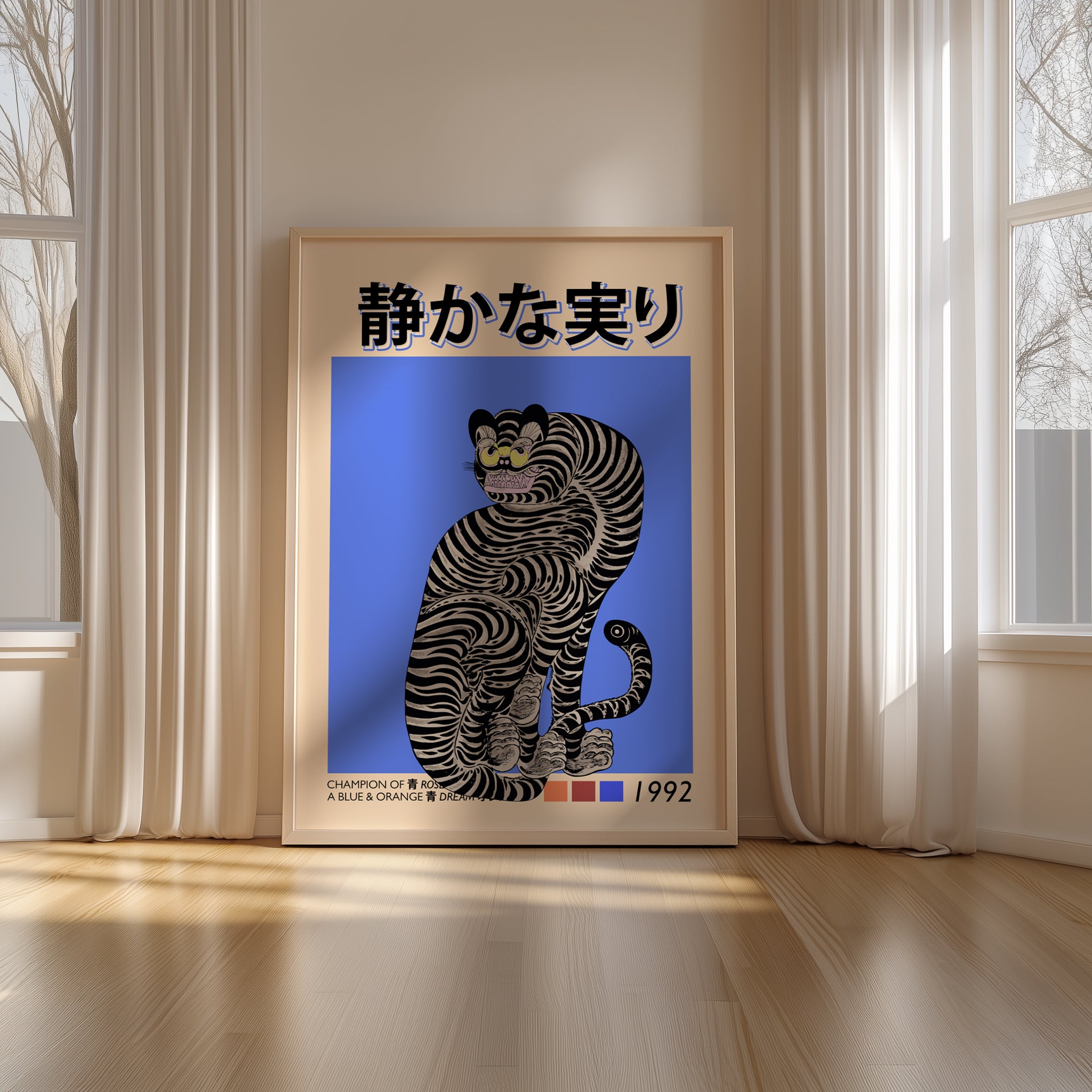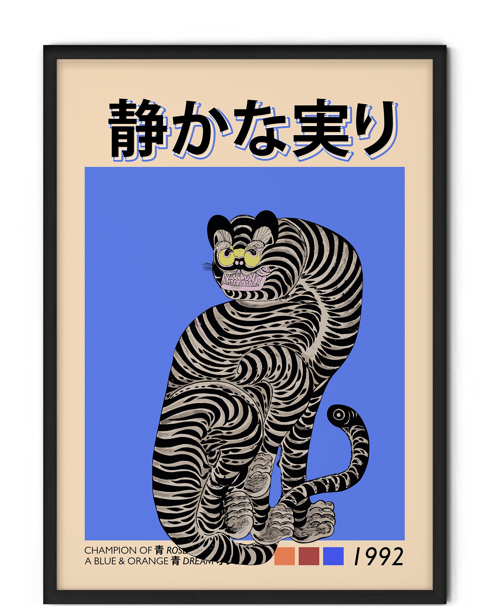 Inspired by vintage woodblock aesthetics and symbolic animal art, the striped cat stands as a guardian figure — calm, observant, and quietly powerful. The restrained palette and strong silhouette make this piece ideal for contemporary interiors, collectors of Japanese-inspired art, and lovers of timeless design.